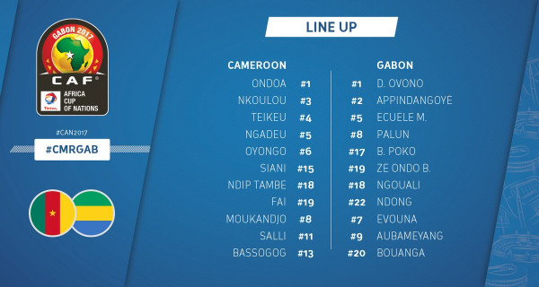 وسيكون اللقاء حاسما لأصحاب الأرض، والمجبرين على الفوز إذا ما أرادوا التأهل إلى الدور ربع النهائي، وفي حال التعادل فعليهم إنتظار نتيجة المباراة الثانية في ذات المجموعة بين بوركينافاسو وغينيا بيساو، وفيما يلي التشكيلتين الأساسيتين لكل من المنتخبين الغابوني والكاميروني في مباراة اليوم: