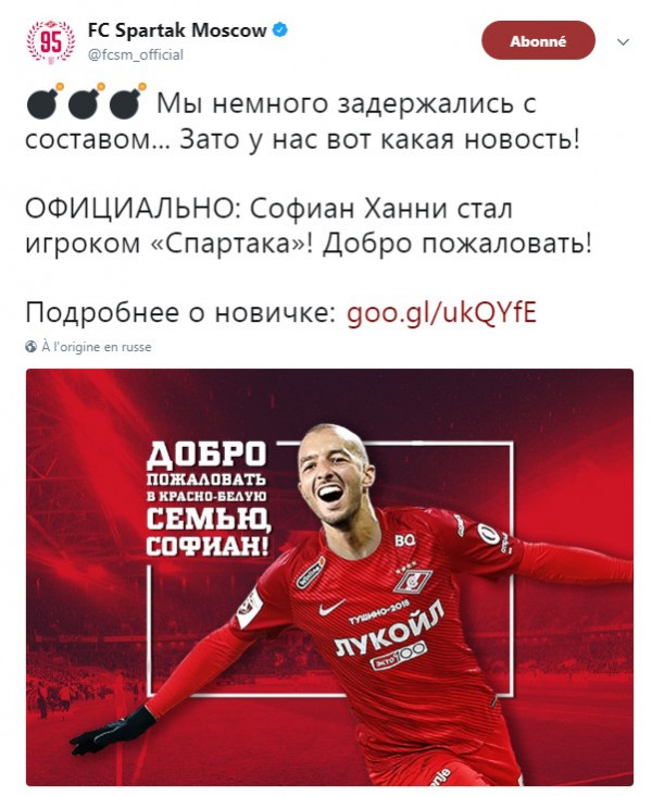 أعلن نادي سبارتاك موسكو الروسي ضمه الدولي الجزائري سفيان حني...