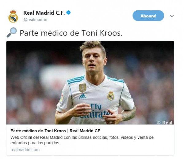 أعلن ريال مدريد عبر موقعه الرسمي غيابه متوسط ميدانه الألماني توني كروس عن المباراة المقبلة للفريق...