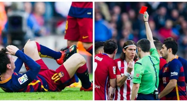 فيليبي لويس لحظة اعتدائه على ليونيل ميسي