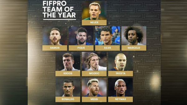 نشرت العديد من المواقع العالمية صورة مسربة قيل أنها لـ تشكيلة العام الخاصة بالإتحاد الدولي لكرة القدم، حيث عرفت إكتساح من لاعبي ريال مدريد و برشلونة، بتواجد 5 لاعبين من "الملكي" و 4 لاعبين من جانب "البلاوغرانا"، بالإضافة إلى حارس بايرن ميونيخ مانويبل نوير،  ومدافع باريس سان جيرمان تياغو سيلفا.