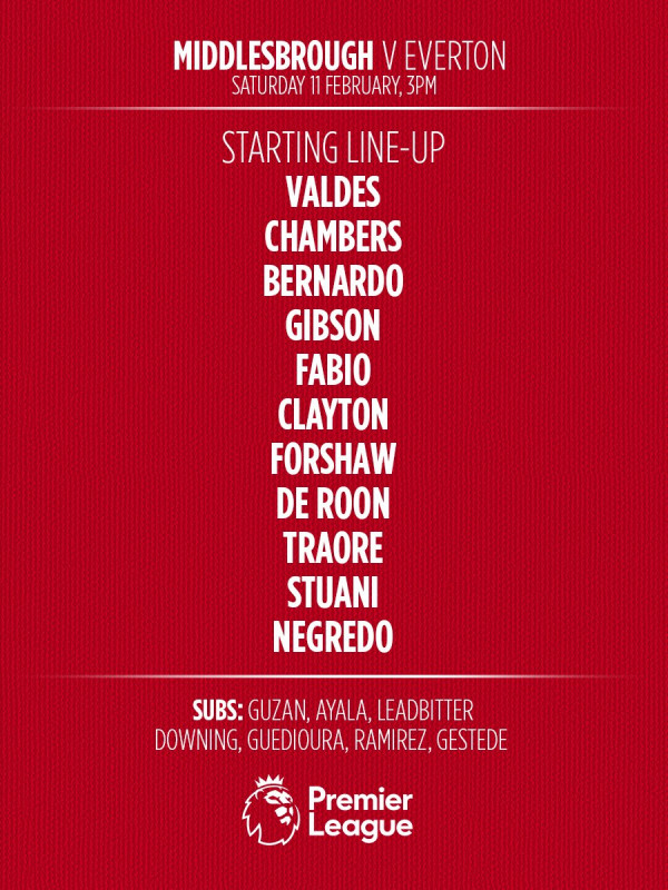 يواجه ميدلسبرو نادي إيفرتون ضمن مباريات الجولة 25 من الدوري اإنجليزي الممتاز في لقاء يشهد تواجد الدولي الجزاري عدلان قديورة على دكة البدلاء من جانب ميدلسبرو وبهذا يتواصل إستبعاد الدبابة عن التشكيلة الأساسية من أن إنضم إلى الفريق خلال الميركاو الشتوي الحالي.