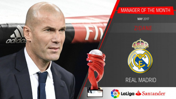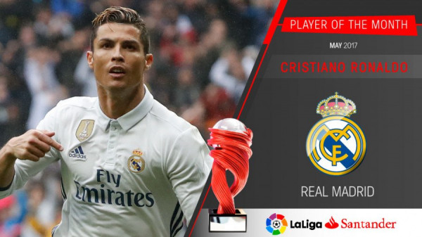 أعلنت رابطة الدوري الإسباني عن تتويج كريستيانو رونالدو بجائزة أفضل لاعب في الدوري الإسباني لشهر ماي، وكان النجم البرتغالي قد سجل 5 أهدافا الشهر الماضي كانت حاسمة في تتويج الريال بلقب "الليغا"، وفي سياق متصل توج زين الدين زيدان بجائزة أفضل مدرب في الدوري لنفس الشهر.