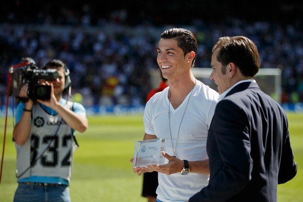 تم تكريم كريستيانو رونالدو نجم ريال مدريد  من قبل مستشفى "سانيتاس" بجائزة أفضل لاعب في النادي الملكي من الناحية البدنية والصحية هذا الموسم، يأتي هذا عقب بداية المباراة ريال مدريد أمام أوساسونا في "البرنابيو".